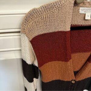 Saltwater Luxe Womens Beachy Chunky Knit Striped Long Line Cardigan Cotton Blend