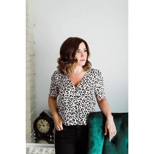 Saltwater Luxe Women’s Short Sleeve Animal Print Mora Blouse Size Small