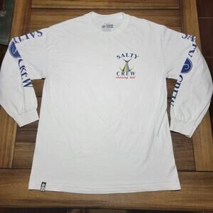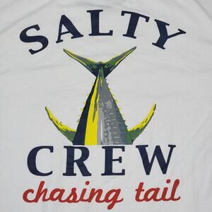 Salty Crew Long Sleeve White Unisex Fishing Tee featuring the "Chasing Tail" design in Size Large. This tee is perfect for any fishing enthusiast who wants to stay comfortable and protected from the sun while out on the water. Show off your passion for fishing with this stylish and functional long sleeve tee! Excellent condition. Comes from a smoke free home.