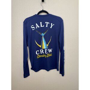 Salty Crew Mens Chasing Tail Long-Sleeve Shirt S Navy Polyester Fishing