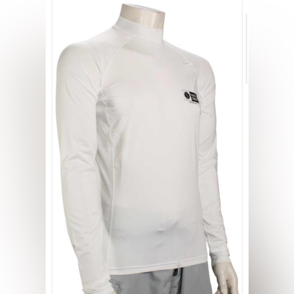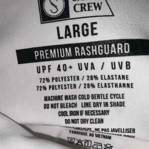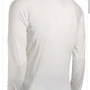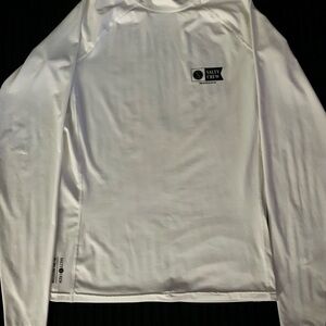 White Salty Crew Rash Guard. Only worn once. Has a snag as pictured and other imperfections pictured. Still in great condition just too snug size L in Men’s