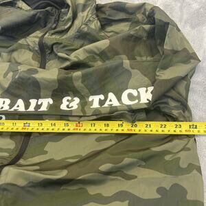 The Salty Crew Rain Jacket Hoodie in unisex XL size is a camouflage-patterned water-repellant fishing gear perfect for casual occasions. Made from nylon with a polyester insulation material, this mid-length jacket features a zip closure, hood, and logo accents. It is designed for fishing enthusiasts in various seasons, making it a versatile and practical choice for outdoor activities near the beach, ocean, or lake. The jacket's waterproof and lightweight features ensure you stay comfortable and dry while enjoying your time on the water.