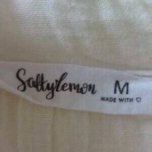 Salty lemon cover up size M, cream soft cotton, frayed seams, button up front, front pocket