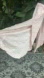 This Super cute outfit is a soft pastel pink and white rayon fabric. There’s elastic at the bus and under the bus and the straps are self Thai. You contact them in and wear it as a tube top. There’s plenty of stretching that elastic. The pants are full wrap. They’re split up the side to the mid thigh and are a wide leg flutter with a rounded hem. New with tags