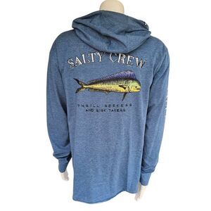 Salty Crew 2XL Hoodie Blue Long Sleeve Technical Tee Mahi Fish Logo Pullover