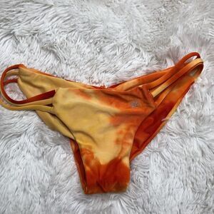 Salty Honey orange tie dye scrunch strappy bikini bottoms or small. Color is Glow Up. NEW strapped bottoms. low rise. partial scrunch. medium coverage. true to size