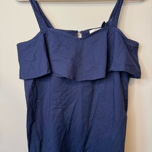 Salua Midi Navy Cotton Dress Size Medium Ruffle