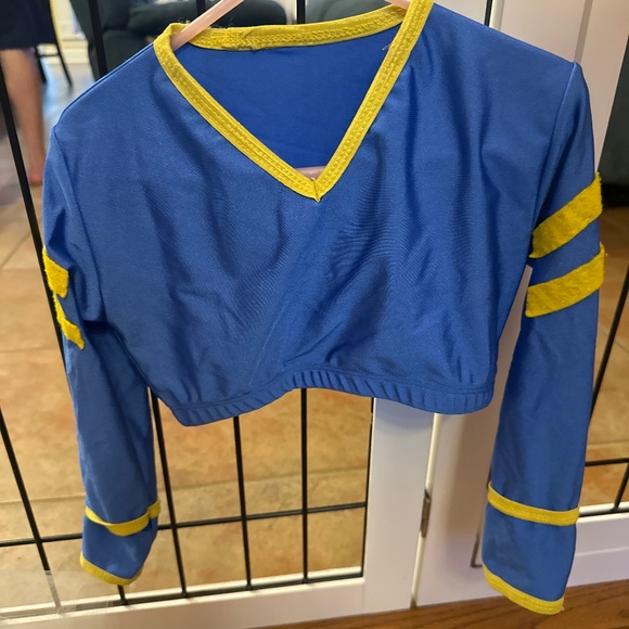 Long sleeve spandex halter top with yellow trimming