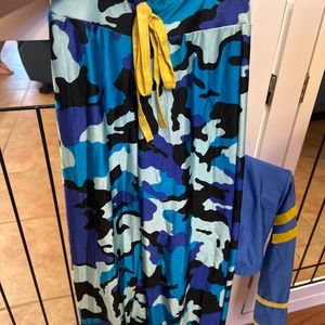 Blue camo print spandex pants with draw string