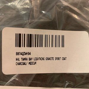 This is a new with tags Charcoal Granite Gray NHL Tampa Bay Lightning Sport Coat in size Medium made by Salute by Level Wear. The measurements are Chest 38-40", and Waist 31-34". It has a retail value of $150.