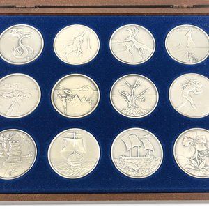 Rare! Salvador Dali "Homage to Israel" 30.6 troy oz. .999 Silver Medals. Limited Edition set of 12 limited edition .999 Fine Silver art medals "Homage to Israel" commemorating the 25th Anniversary of the State of Israel (1948-1973). These medals depicting the Twelve Tribes of Israel were designed by Salvador Dali, and the set was recognized by Abba Bean.