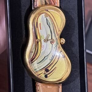 The Salvador Dali Softwatch by Exaequo Geneve is a unique and artistic wristwatch designed for unisex adults. This melting clock concept watch features a multicolor leather band, making it a stylish accessory for any outfit. It comes with its original box and manual, ensuring it is well protected and documented for maintenance or future reference. This exclusive timepiece showcases the creativity and craftsmanship of Geneve, making it a desirable piece for watch collectors and enthusiasts.