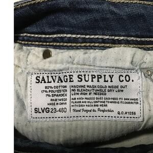 Elevate your casual wardrobe with these Salvage denim jeans in size 30S. Featuring a regular fit and intentional distressing at each leg opening, these jeans offer a rugged, vintage-inspired look.