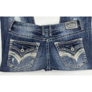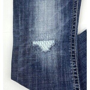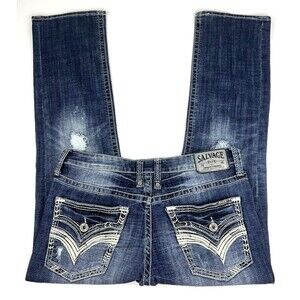 Salvage Jeans Men's 34 x3 1 Havoc Straight Regular Stretch Distressed Blue Whiskered Buckle.