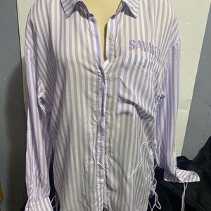 Salvage Purple and White Striped Swim Coverup