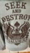 Salvage Seek & Destroy Hoodie w/front zipper in Gray/Brown Size-XL. Materials: 100% Cotton. 95% Cotton & 5% Spandex. RN# 128891. Distress hoodie and seams. 2Front pockets. Graphic print. Smoke free home. Fast shipping. NWT