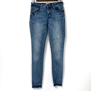 Salvaje Denim Distressed Mid Rise Stretch Denim Skinny Raw Released Hem Jeans 5