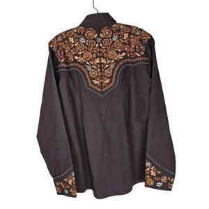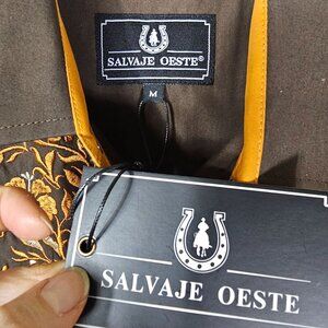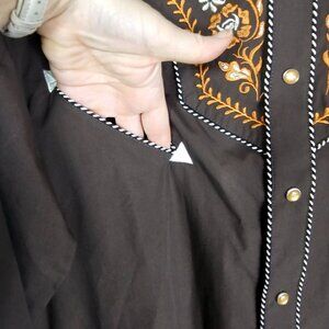 Salvaje Oeste Western Cowboy Pearl Snap Shirt M Brown Orange Embroidered Rodeo