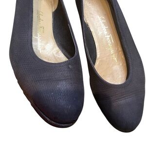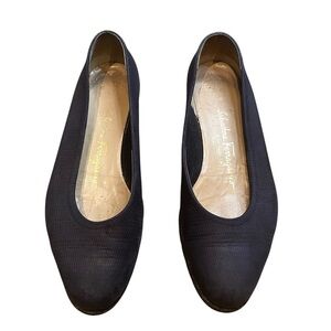 Salvato Ferragamo Black Pebbled Round Toe Flats Sz 7