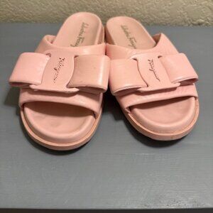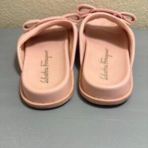 The signature Ferragamo Vara bow, which adds an elegant and sophisticated touch however, this bow is oversized and compliments the slide. The Viva Bow Slides are versatile and can elevate a variety of outfits, from casual ensembles to brunch attire or other events.