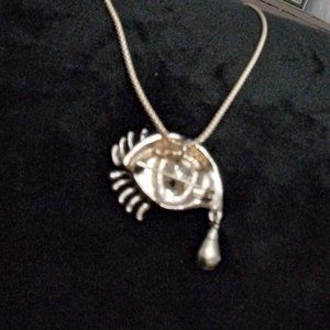 Salvatore Dali Eye Time Blue Rhinestone & Enamel Evil Eye Art Pendant & Necklace