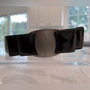 SALVATORE FERRAGAMO BLACK/brown patent leather double box belt