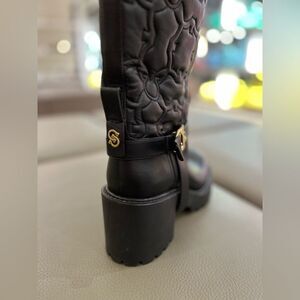 Salvatore FERRAGAMO Shiran Gancini Leather Knee-High Boots, Black, Retail $1590