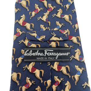 Salvatore Ferragamo 100% Silk Tie Necktie Dark Navy Horse Print Made in Italy