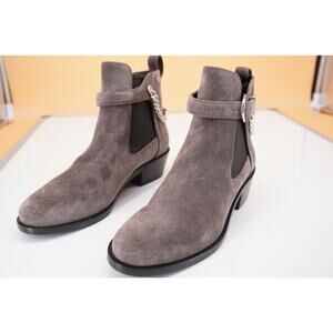Salvatore Ferragamo Ardisievit Chain Ankle Boots Sz 6 C Chelsea $930 Grey Suede