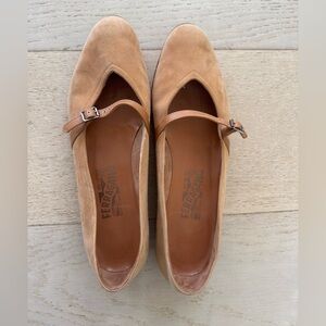 Salvatore Ferragamo Audrey Ballet Flats Women's Suede light brown 8.5