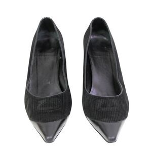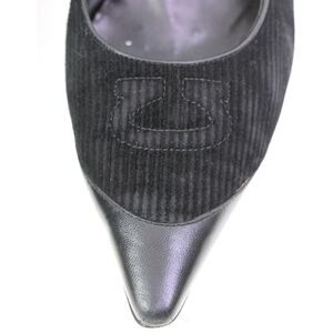Salvatore Ferragamo BLACK REAL LEATHER VELVET MID HEEL CLASSIC PUMP SHOES 8.5C