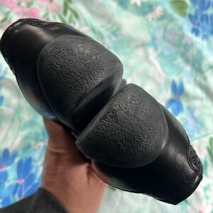 Good condition, toes have wear, left more than right, soles show wear, tiny crack when folded forcibly, on left. Heels are worn - pictured.
