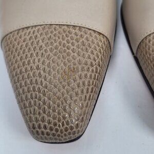 Salvatore Ferragamo Beige Leather & Snakeskin Cap Toe Pumps US Size 6 AAAA