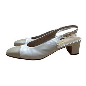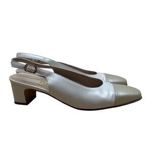 Salvatore Ferragamo Beige Nudo Calf Leather Slingback Delier Block Heels Sz 10B