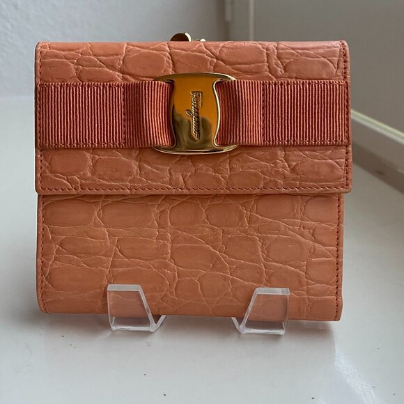 Salvatore Ferragamo Bifold Wallet – Vala Ribbon | Coral/Peach | Compact & Elegant