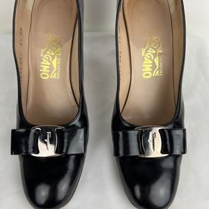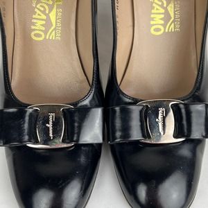 Salvatore Ferragamo Black Bow Embellished Block Heel Pumps