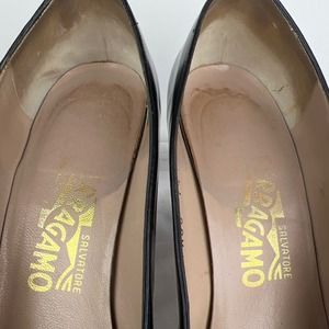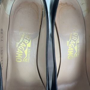 Interior: Has visible heel imprints and the gold "Salvatore Ferragamo" name is worn off in some areas (see photo). Material has darkened, especially around the heel/ankle area as seen in 9th photo