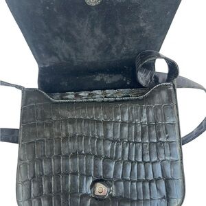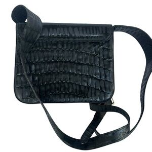 Salvatore Ferragamo Black Croc Embossed Crossbody Bag