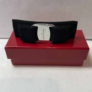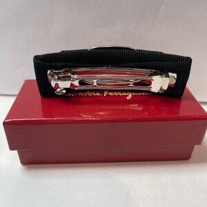 Salvatore Ferragamo Black Grosgrain Vara Bow Hair Clip, Silvertone Buckle - NWT