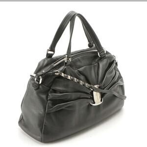 Salvatore Ferragamo Black Lambskin 2-Way Bag Gancini Logo Satchel