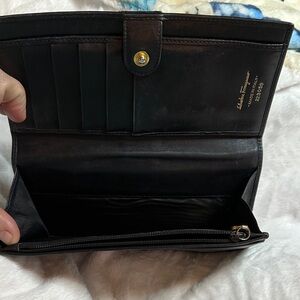 Salvatore Ferragamo Black Leather Clutch with Gold Accent