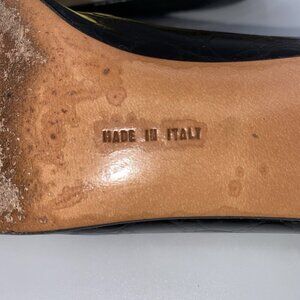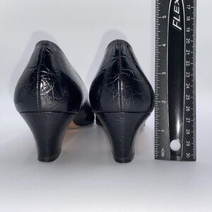 Salvatore Ferragamo Black Leather Croc Print Low Block Heel Slip-On 7.5AA Shoes