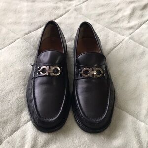 Salvatore Ferragamo Black Leather Loafers Mens Size 8