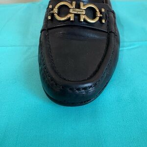 Salvatore Ferragamo Black Leather Loafers with Gold Accent