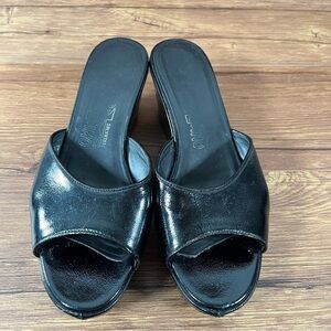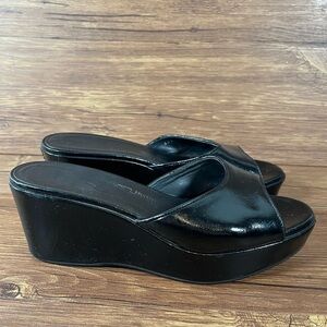 Salvatore Ferragamo Black Leather Platform Slip-On Slides Y2K Women’s Size 7C