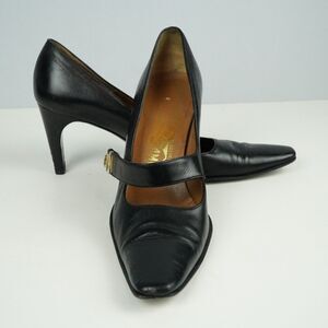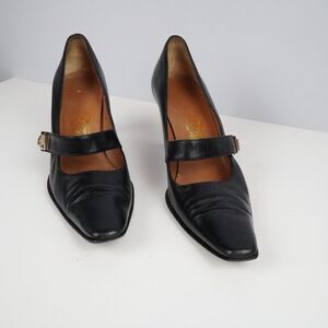 Salvatore Ferragamo Black Leather Pumps Size 7 Mary Jane Style Made in Italy