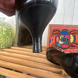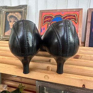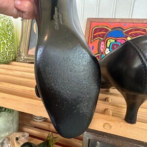 Salvatore Ferragamo Black Leather Pumps With Gold Buckles Size 7.5