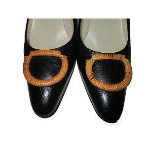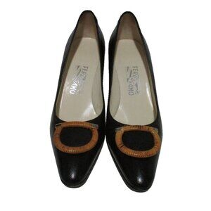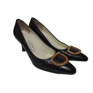 *Salvatore Ferragamo Black Leather Pumps w Wrapped Vamp Logo - 9.5B