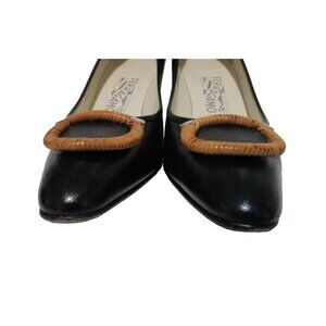 Salvatore Ferragamo Black Leather Pumps - 9.5B. Wrapped Leather and Silver Vamp Logo. 3" heel. Padded signature insoles. All measurements are approximate. Please see photos for. more details. 0715 (S25-15)
