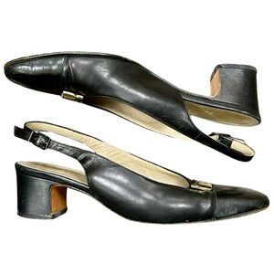 Salvatore Ferragamo Black Leather Slingback Heels with Gold Hardware – Size 8B